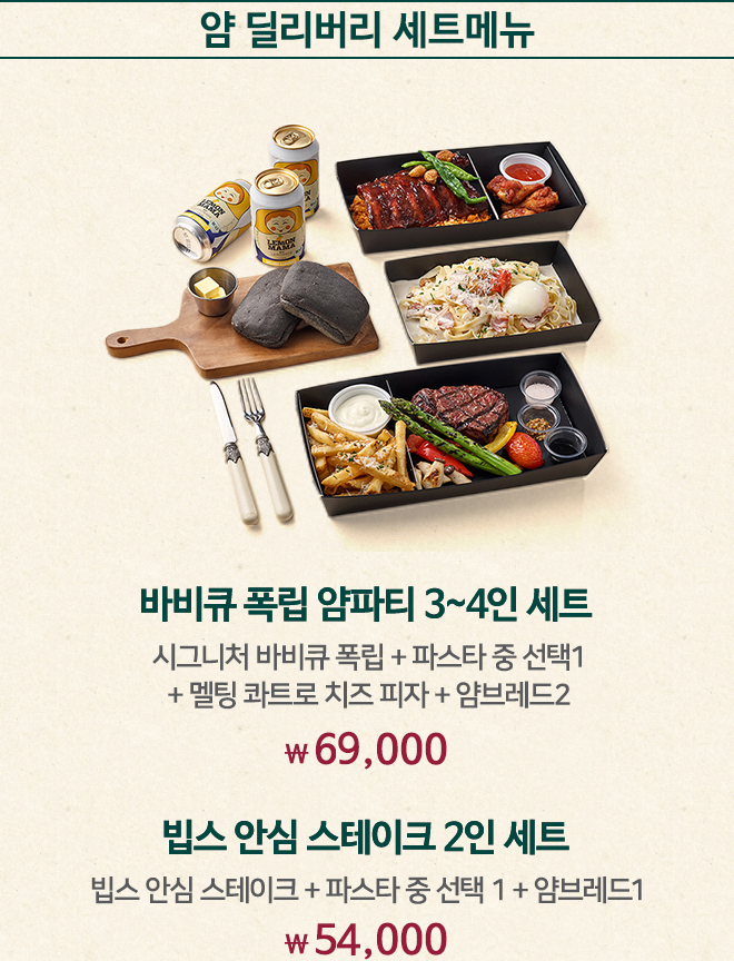 빕스 패밀리 세트와 단체 메뉴