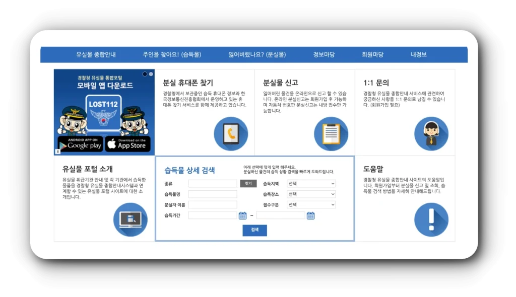 - 분실물의 특징을 최대한 상세히 기록하세요