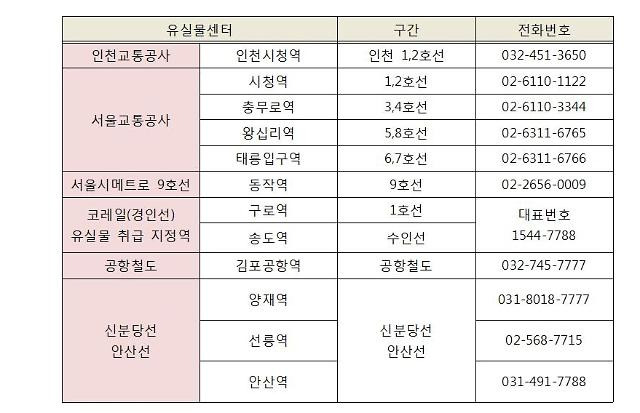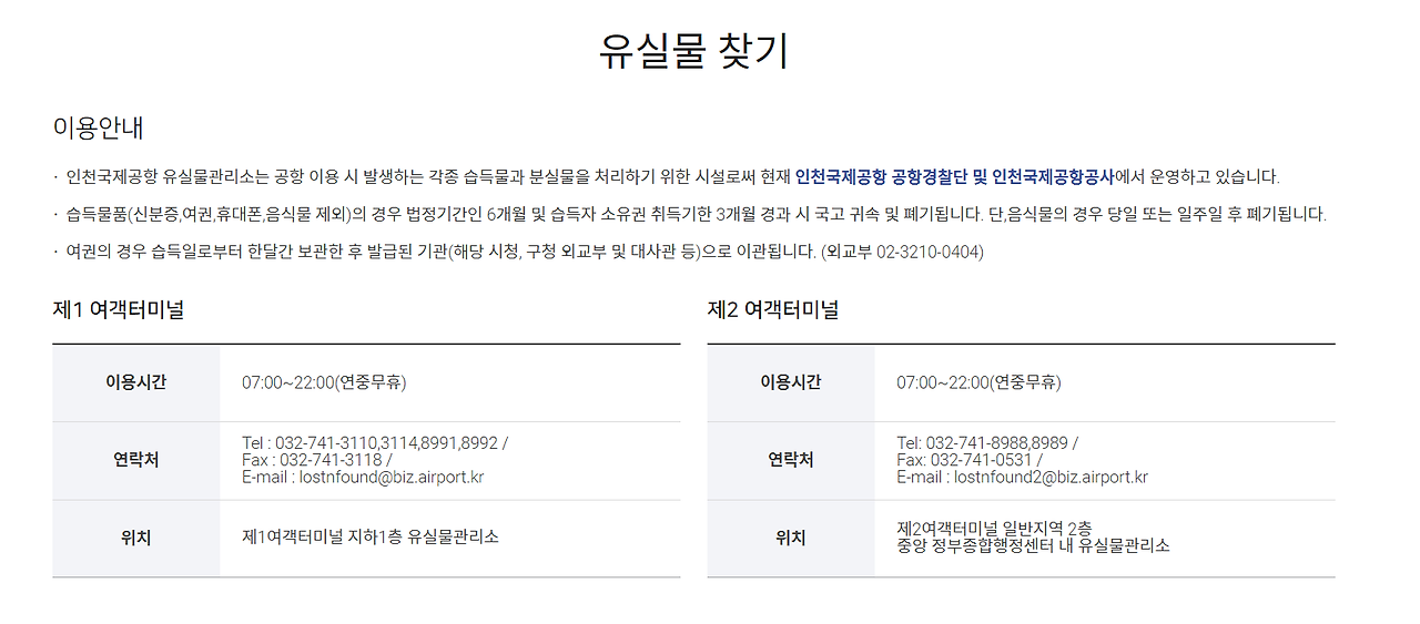 - 인천공항 유실물 센터에 직접 방문하거나 전화하세요